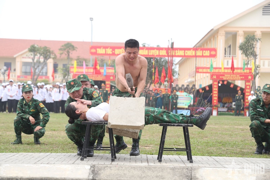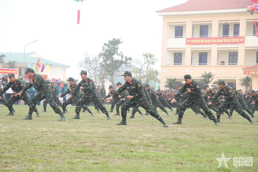Mở đầu chương trình là bài quyền 45 động tác dao găm kết hợp 38 động tác võ tay không do cán bộ, chiến sĩ Đại đội Trinh sát-Cơ giới, Phòng Tham mưu, Bộ CHQS tỉnh Nghệ An thể hiện. Đội hình triển khai đồng loạt, động tác dứt khoát, những đường dao sắc gọn, mạnh mẽ tạo nên thế trận uy nghiêm. Các đòn tấn công, phòng thủ, xoay người, đổi hướng được thực hiện chính xác, nhịp nhàng, thể hiện sự khổ luyện bền bỉ và tinh thần kỷ luật nghiêm minh.