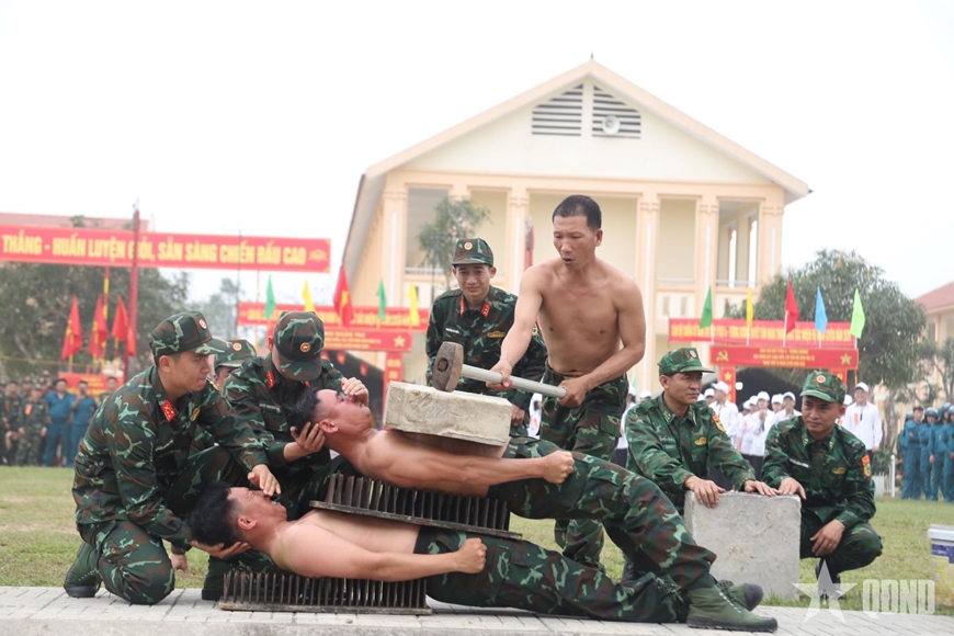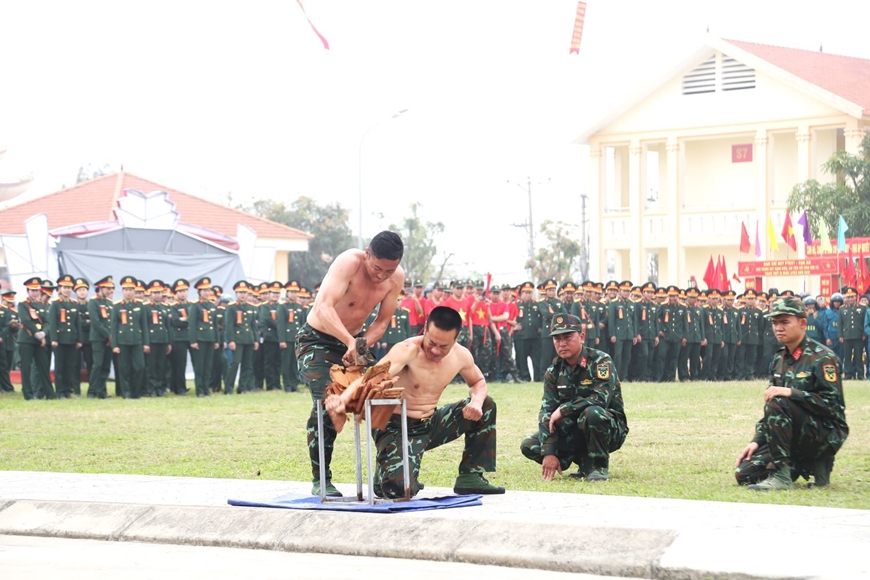 Đặc biệt, nội dung biểu diễn khí công đã đẩy cảm xúc người xem lên cao trào. Từ màn đập ngói trên cánh tay, nằm trên ghế, nằm trên bàn chông, giá kiếm, mảnh chai đập bê tông đến tiết mục dùng giáo chống vào yết hầu đẩy xe ô tô… tất cả cho thấy sức mạnh nội công, ý chí bền bỉ và sự khổ luyện nghiêm túc của cán bộ, chiến sĩ. Mỗi tiết mục vừa phô diễn thể lực vừa là minh chứng sinh động cho tinh thần vượt khó, quyết tâm hoàn thành xuất sắc nhiệm vụ được giao.