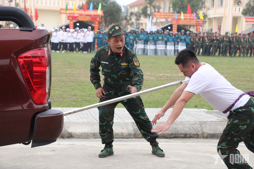Phần xử trí tình huống giả định đấu tranh phòng, chống tội phạm mua bán người qua biên giới và các màn đối kháng 1 đánh 3, 2 đánh 5 đã tái hiện sinh động tinh thần mưu trí, dũng cảm của cán bộ, chiến sĩ. Các đòn gạt, né tránh, khóa tay, quật ngã, khống chế đối tượng được thực hiện nhanh gọn, hiệu quả, đảm bảo an toàn cho mục tiêu, thể hiện rõ tính thực chiến cao trong huấn luyện.