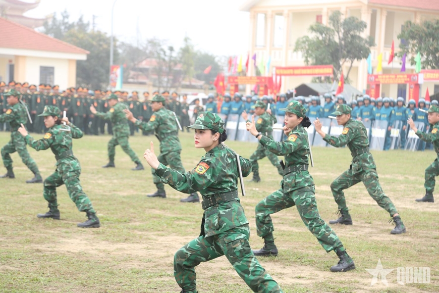 Màn biểu diễn võ thuật mãn nhãn tại Lễ ra quân huấn luyện năm 2026 thể hiện khí thế, quyết tâm mạnh mẽ xây dựng LLVT tỉnh ngày càng chính quy, tinh nhuệ, hiện đại, đáp ứng yêu cầu nhiệm vụ trong tình hình mới.