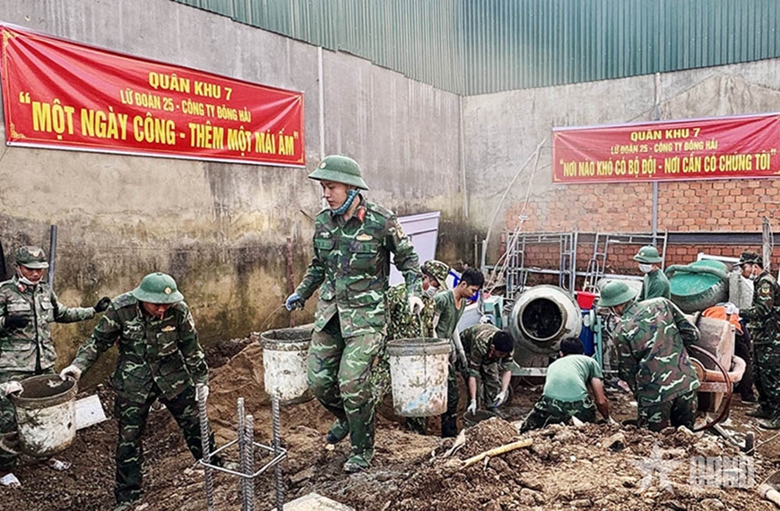 Trước đó, đầu tháng 12-2025, triển khai “Chiến dịch Quang Trung” giúp dân xây lại nhà sau lũ, Lữ đoàn 25 phối hợp chặt chẽ với Công ty TNHH MTV Đông Hải (Quân khu 7) và cấp ủy, chính quyền địa phương xã D’ Ran huy động lực lượng, phương tiện giúp đỡ gia đình bà Đặng Thị Bé và gia đình ông Nguyễn Văn Nghĩa, ngụ tại thôn Đường Mới (xã D’Ran) xây lại căn nhà cấp 4, gồm phòng khách, 2 phòng ngủ, phòng bếp và công trình phụ.