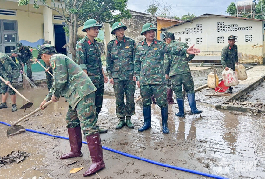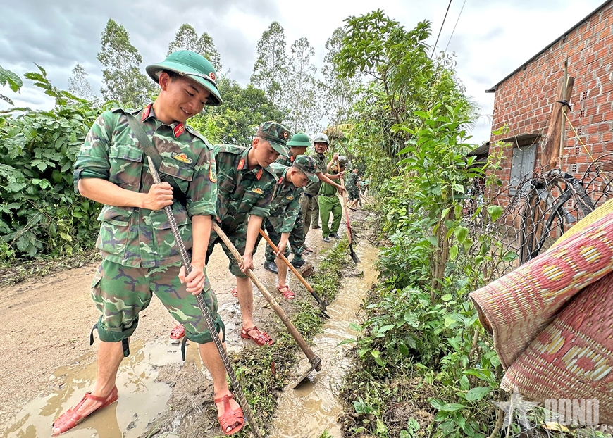 Đơn vị cũng tiến hành nạo vét kênh mương và đào mương thoát nước; cắt và dọn dẹp cây ngã đổ trên các trục đường để người dân đi lại bình thường; phun khử khuẩn 2 trường học và 720 hộ dân bị ngập nặng.