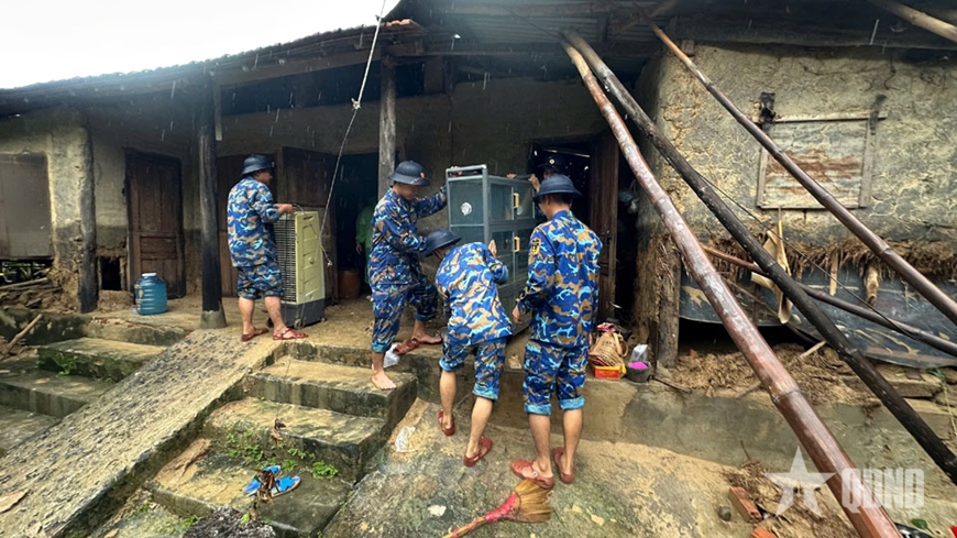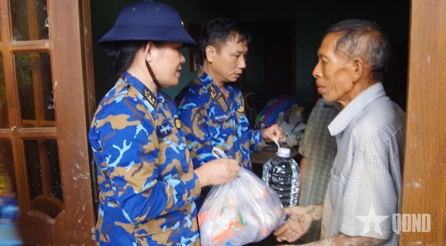 Không quản điều kiện thời tiết, từng nhóm cán bộ, chiến sĩ vẫn liên tục vận chuyển nhu yếu phẩm, thuốc chữa bệnh, nước sạch hỗ trợ người dân. Nhiều chuyến mang vác phải vượt qua các đoạn bùn lún sâu, nhưng tất cả đều được thực hiện khẩn trương để người dân sớm ổn định cuộc sống.