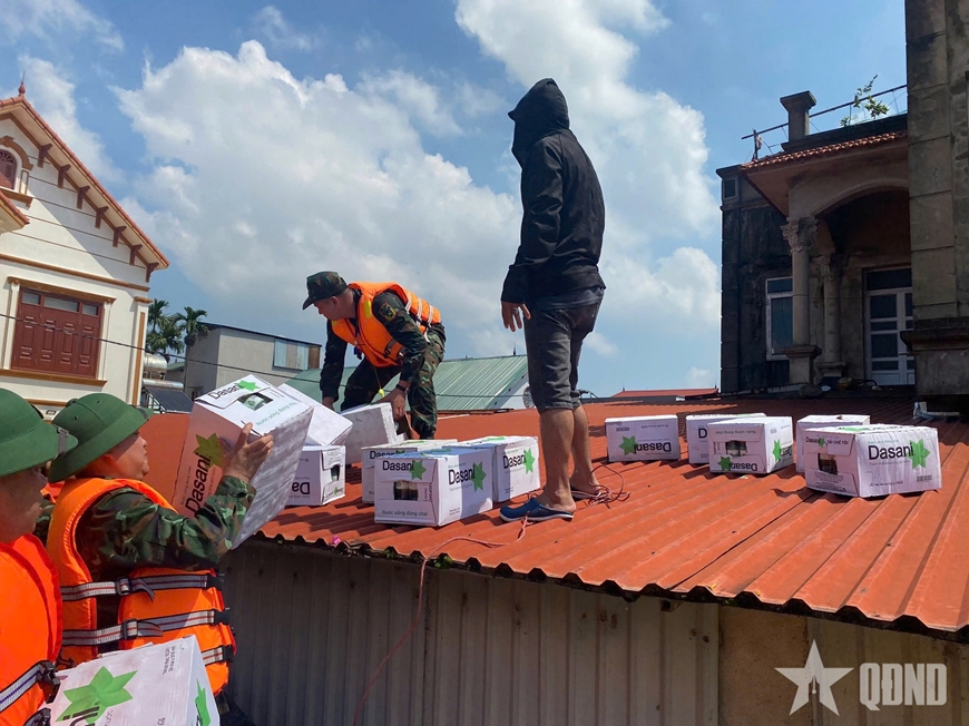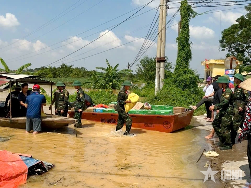 Sau nhiều ngày thiên tai gây ngập lụt diện rộng tại địa bàn hai thôn Diên Lộc và thôn Đồng Nhân, xã Tam Giang, tỉnh Bắc Ninh, cán bộ, chiến sĩ Lữ đoàn 229 (Binh chủng Công binh) đã nhanh chóng tham gia cứu hộ, cứu nạn và tiếp tế nhu yếu phẩm cho nhân dân.