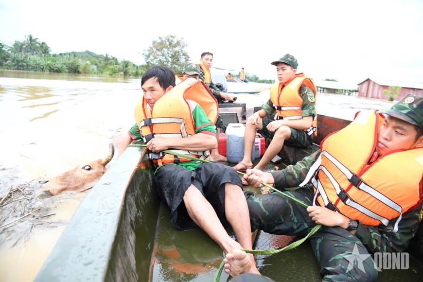 Trên sông Đồng Nai, các hồ chứa thủy điện xả lũ với lưu lượng lớn làm nhiều khu vực ở xã Cát Tiên, Cát Tiên 2 chìm trong biển nước. Mực nước dâng lên từng phút, uy hiếp tính mạng và tài sản của nhân dân. Ngay trong đêm, Lữ đoàn Công binh 25 chia lực lượng thành nhiều tổ, mang theo xuồng, thuyền cứu hộ, tỏa đi các điểm ngập sâu phối hợp cùng LLVT địa phương giúp đỡ nhân dân.