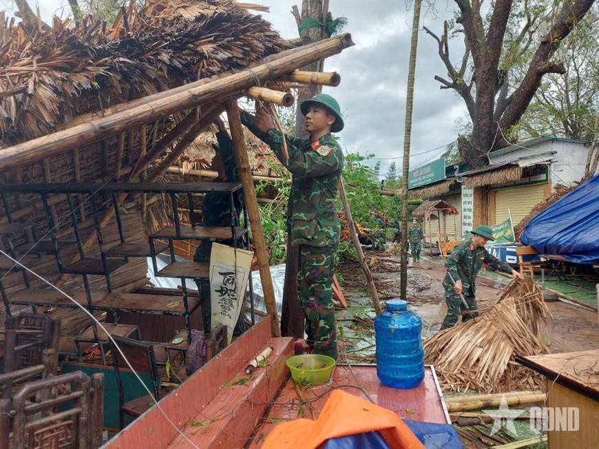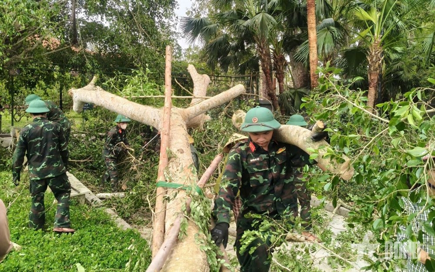 Những phần việc như: Cưa cắt, thu dọn hàng chục cây xanh gãy đổ; dựng lại các pano tuyên truyền bị ngã đổ; thu gom, xử lý rác thải; gia cố mái tôn bị tốc; sửa chữa các hạng mục công trình hư hỏng; chỉnh trang, tôn tạo lại khuôn viên khu di tích.