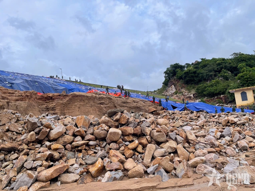 Trong chiều và tối 18-11, bộ đội khẩn trương đắp bao tải đất, gia cố mái đập, mở kênh thoát nước và phối hợp với chính quyền địa phương kiểm tra toàn bộ khu vực. Nhờ triển khai kịp thời, nguy cơ sạt lở được kiểm soát, góp phần bảo đảm an toàn cho khu vực dân cư hạ du.