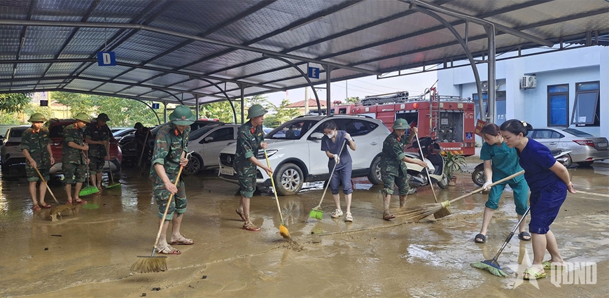 Giữa bùn đất, những bước chân người lính Lữ đoàn Pháo binh 382 vẫn không ngơi nghỉ, mang đến hơi ấm, niềm tin và sự bình yên cho nhân dân vùng lũ.