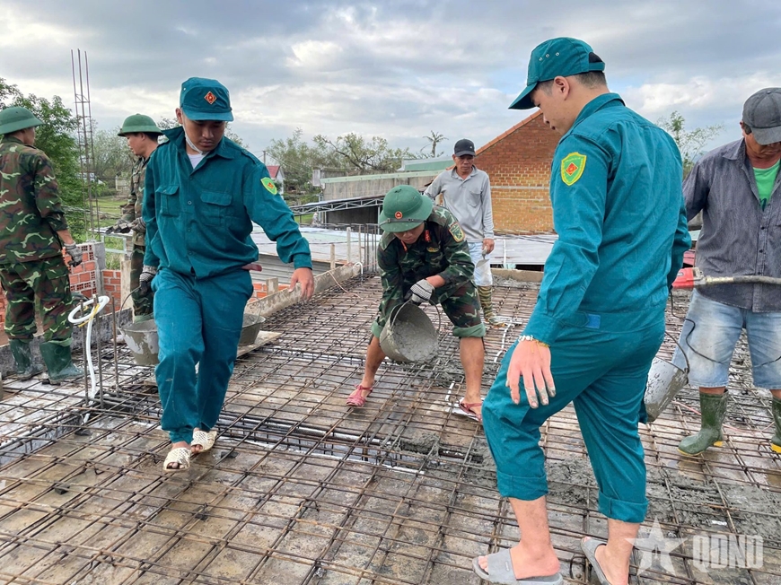 Với tinh thần trách nhiệm cao, không quản ngại khó khăn, thời tiết khắc nghiệt và điều kiện sinh hoạt còn nhiều thiếu thốn, cán bộ, chiến sĩ Lữ đoàn Phòng hóa 88 đã trực tiếp tham gia san nền, đào móng, vận chuyển vật liệu, xây dựng khung nhà, đổ mái… Mỗi phần việc đều được thực hiện bằng tinh thần khẩn trương, nghiêm túc, thể hiện rõ tình cảm, trách nhiệm của người lính đối với nhân dân bị ảnh hưởng bởi bão, lũ khu vực miền Trung.