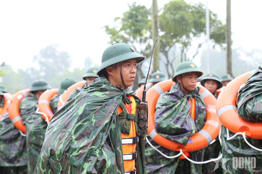 Cán bộ, chiến sĩ LLVT Bộ CHQS TP Đà Nẵng sẵn sàng thực hiện nhiệm vụ ứng phó mưa bão xảy ra trên địa bàn.