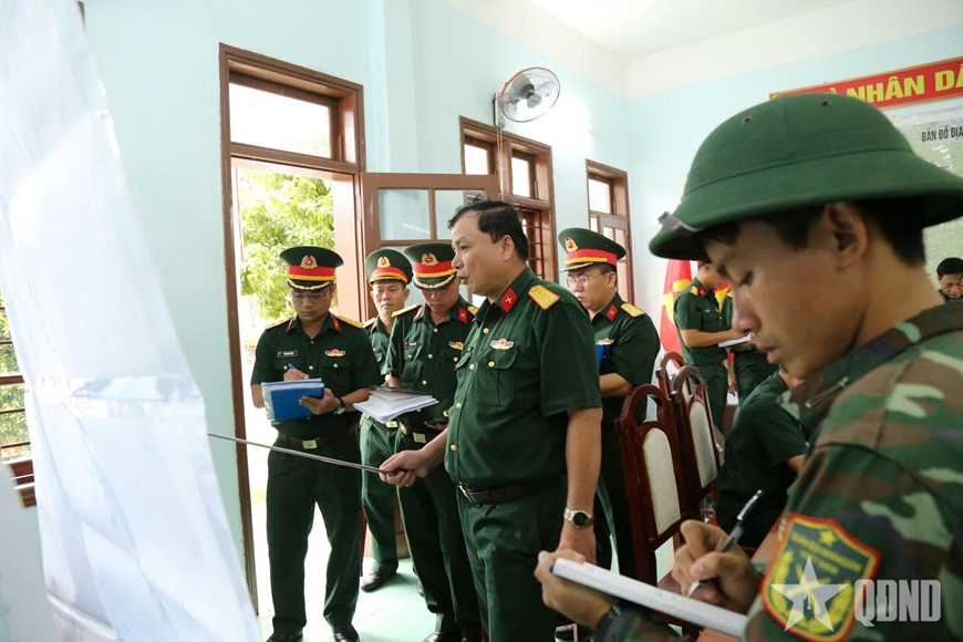 Thủ trưởng Phòng Tác chiến Quân khu 5 kiểm tra kế hoạch sử dụng lực lượng, phương tiện làm nhiệm vụ Phòng, chống thiên tai - tìm kiếm cứu nạn tại Trung đoàn 971.