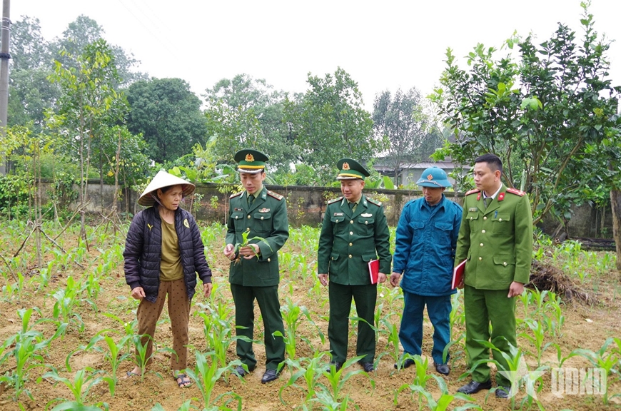 Rời đường biên, chúng tôi về địa bàn xã biên giới Hương Xuân. Tại đây, cán bộ Đồn Biên phòng Bản Giàng cùng Ban CHQS xã, công an xã đang trao đổi tình hình an ninh trật tự trong những ngày trước, trong Tết. Đồng chí Phan Viết Phước, Ban CHQS xã Hương Xuân (Bộ CHQS tỉnh Hà Tĩnh) chia sẻ: “Thời gian qua, chúng tôi phối hợp chặt chẽ với Đồn Biên phòng Bản Giàng và công an xã nắm chắc tình hình địa bàn; tuyên truyền, vận động nhân dân chấp hành nghiêm quy định của pháp luật; đồng thời hỗ trợ bà con phát triển kinh tế, nâng cao đời sống”.