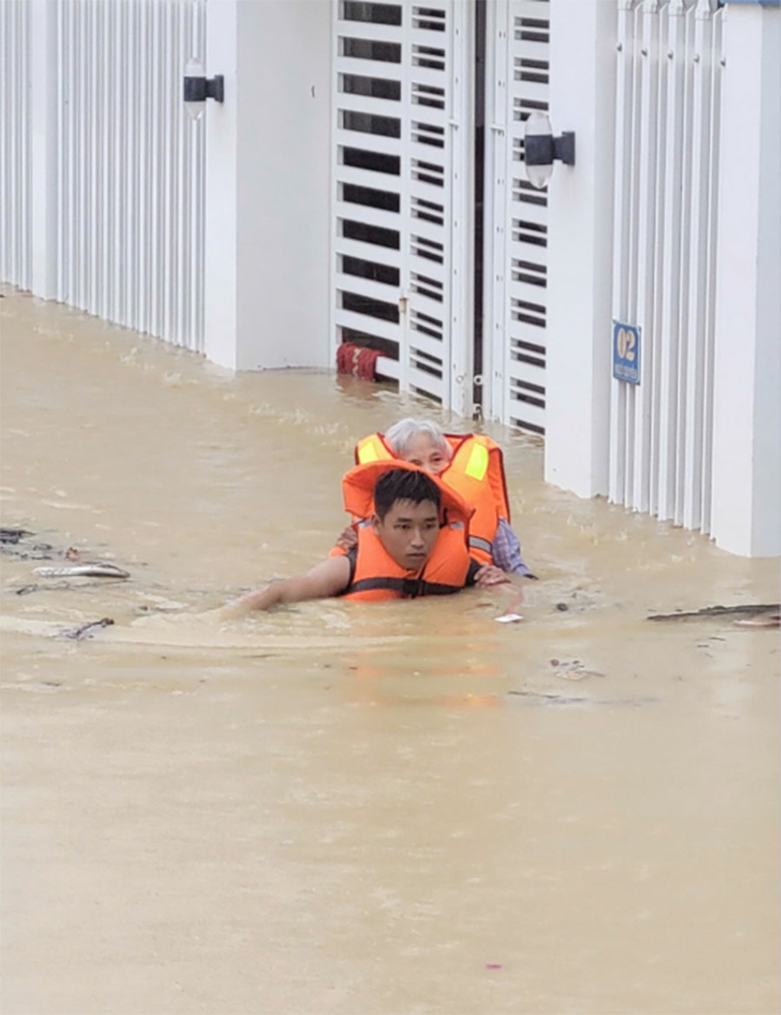 Mấy ngày mưa lũ, tại khu vực Đồng Rọ, thôn Vĩnh Xuân, phường Nam Nha Trang, nước lũ dâng nhanh khiến nhiều nơi ngập sâu sát mép nhà. Nhiều ngôi nhà khó tiếp cận, tiếng kêu gọi người hỗ trợ giữa màn mưa trắng trời. Không chần chừ, Đại úy Nguyễn Văn Tuyền, Đồn phó Nghiệp vụ, Đồn Biên phòng Cửa khẩu Cảng Nha Trang ra lệnh cho tổ công tác phối hợp cùng công an dùng kìm cộng lực cắt khóa cổng để tiếp cận. “Lúc ấy không thể chần chừ, chúng tôi buộc phải cưỡng chế, thậm chí 'bắt ép' bà con lên xuồng. Tài sản có thể mất, nhưng tính mạng thì không thể", Đại úy Nguyễn Văn Tuyền nhớ lại. Cùng với sử dụng xuồng của đơn vị, Đồn Biên phòng Cửa khẩu Cảng Nha Trang còn huy động mô tô nước của các công ty trên địa bàn, nhờ đó mà có thể sử dụng len lỏi các ngõ nhỏ, đường hẹp để cứu người.