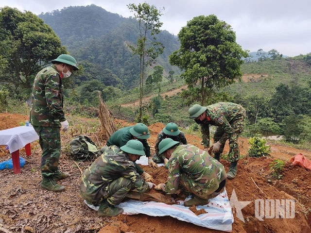 | Đội Quy tập hài cốt liệt sĩ Đoàn Kinh tế - Quốc phòng 337 vượt suối, băng rừng tìm kiếm, quy tập hài cốt liệt sĩ. |