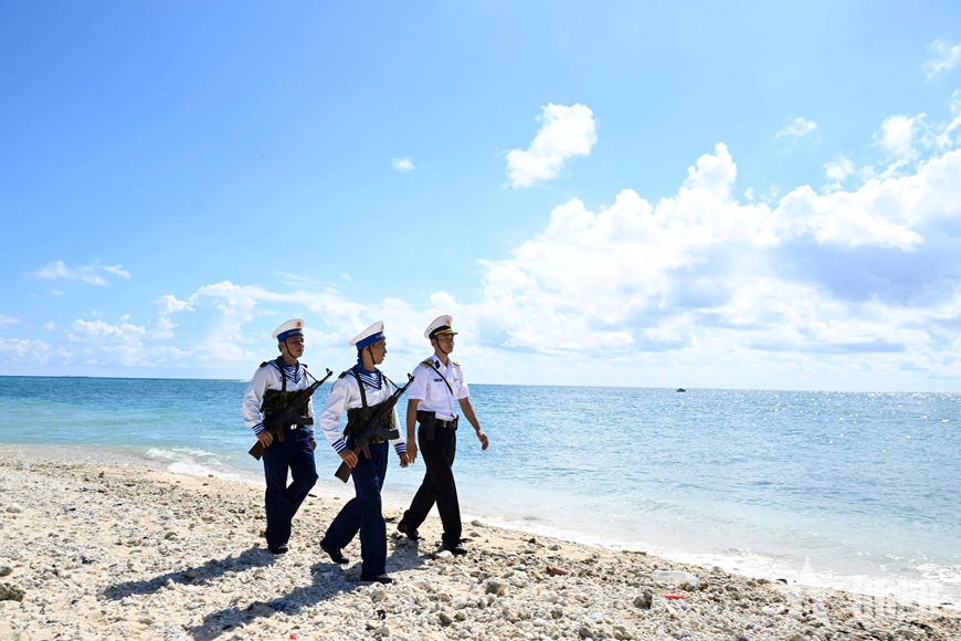| Cán bộ, chiến sĩ đảo Trường Sa Đông thực hiện nhiệm vụ tuần tra. Ảnh: PHÚ SƠN |