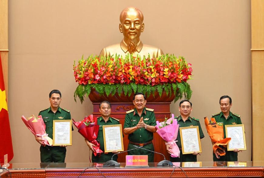 | Thượng tướng Võ Minh Lương, Ủy viên Trung ương Đảng, Ủy viên Thường vụ Quân ủy Trung ương, Thứ trưởng Bộ Quốc phòng trao thưởng cho các đơn vị Bộ đội Biên phòng tham gia Chuyên án A825p. |