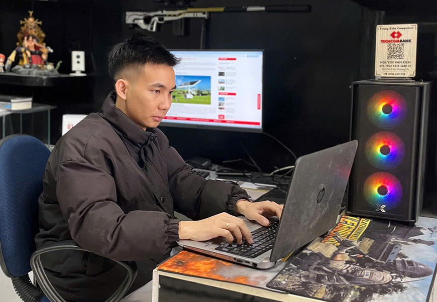 | Nguyễn Văn Kiên sửa chữa, nâng cấp máy tính cho khách hàng. |