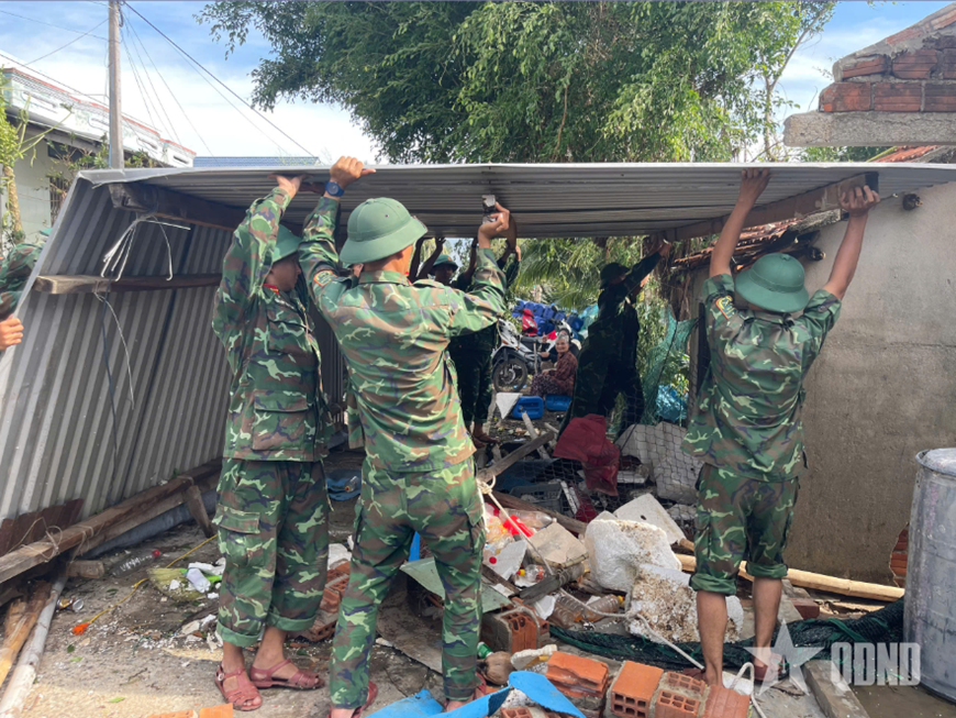 Cán bộ, chiến sĩ LLVT Quân khu 5 vừa lội nước hơn một tuần, dầm mưa giúp dân ứng phó, khắc phục hậu quả đợt "lũ chồng lũ" lịch sử, lại tiếp tục sát cánh cùng cấp ủy, chính quyền, nhân dân các địa phương "chiến đấu" với bão số 13 có sức tàn phá lớn. Hình ảnh cán bộ, chiến sĩ như những ánh sao trong bão, lũ...