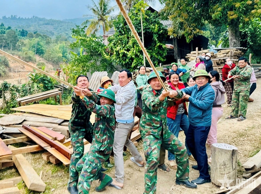 Cùng với lực lượng quân sự, Bộ đội Biên phòng, công an và các tổ chức đoàn thể địa phương cũng tích cực tham gia hỗ trợ ngày công, vận chuyển vật liệu, xây dựng nhà.