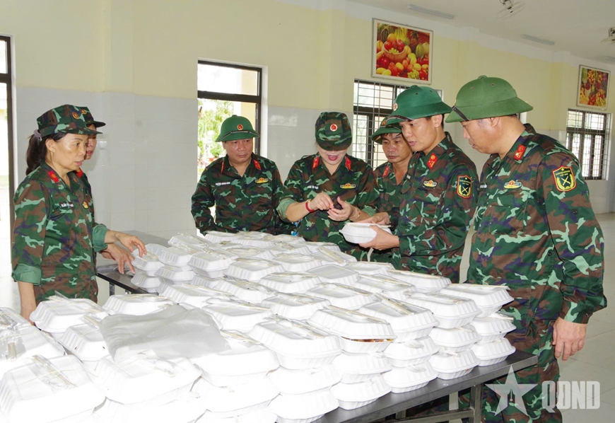 Cán bộ, chiến sĩ Lữ đoàn 575 chuẩn bị 200 phần cơm tặng người dân vùng lũ.