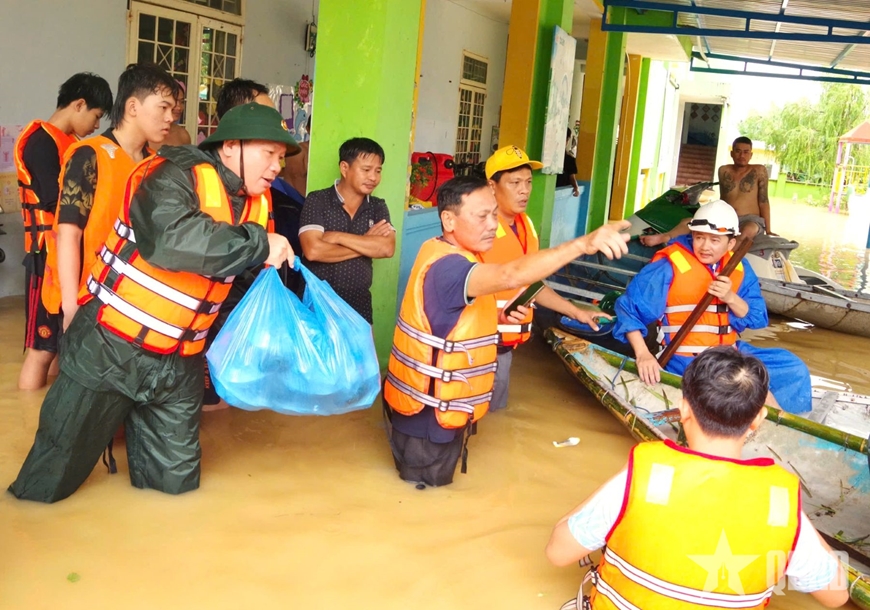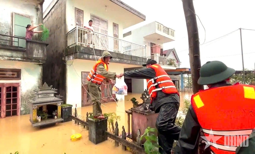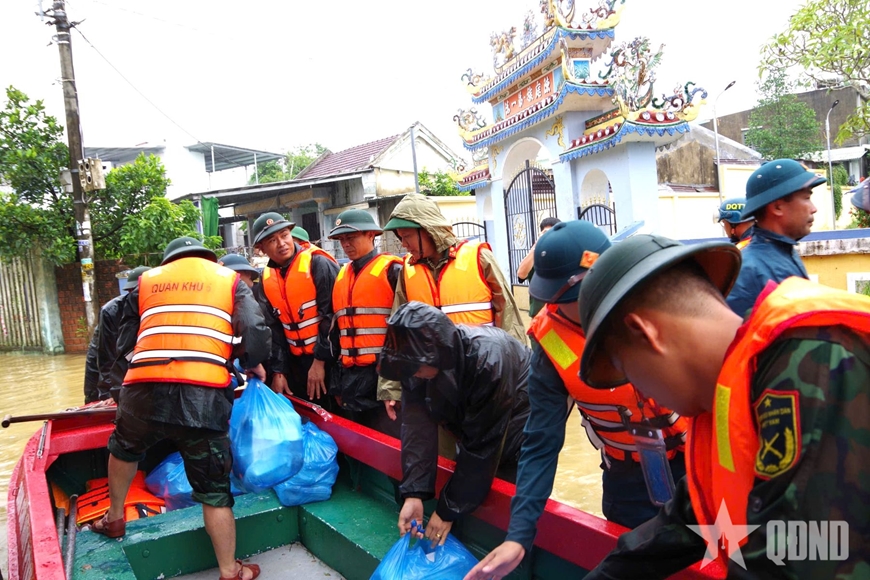 Trước tình hình mưa lũ diễn biến phức tạp, nhiều khu vực bị nước lũ chia cắt, cô lập, việc tiếp tế lương thực, thực phẩm khó khăn, ngày 30-10, đoàn công tác Lữ đoàn 575 (Quân khu ) đã cơ động đến xã Hòa Tiến (TP Đà Nẵng) - địa phương bị thiệt hại nặng nề trong đợt mưa bão vừa qua để trao những phần cơm tình nghĩa tặng bà con.