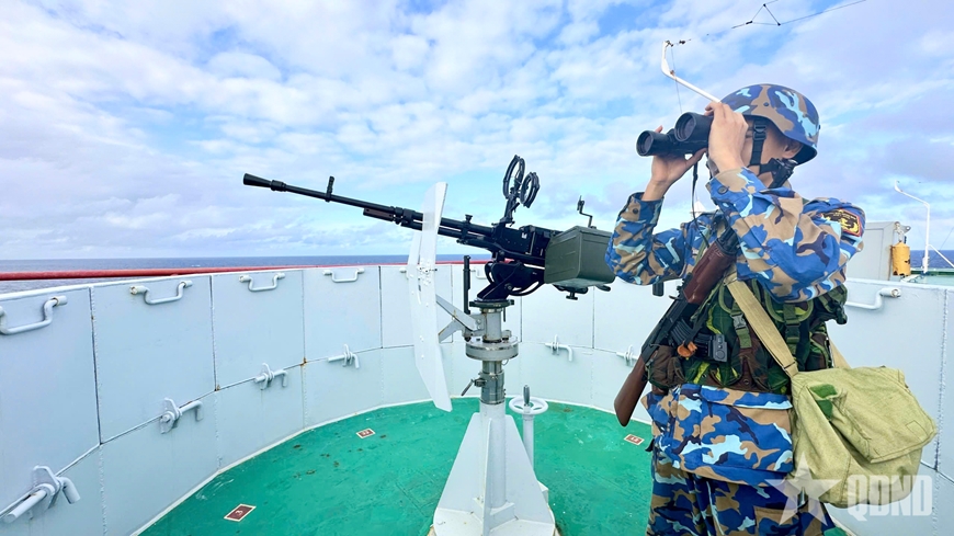 | Cán bộ, chiến sĩ thực hiện nghiêm các chế độ trực, tăng cường quan sát, theo dõi các mục tiêu trên biển. |