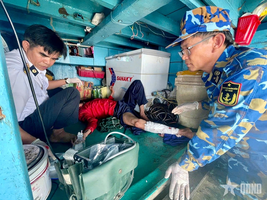 | Tổ quân y Nhà giàn DK1/10 cấp cứu ngư dân gặp nạn, ngày 22-2-2026. |