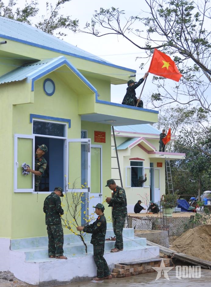 Cờ Tổ quốc tung bay trên những căn nhà do bộ đội chung tay xây dựng trong “Chiến dịch Quang Trung”.