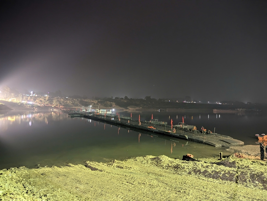 Trong điều kiện thời tiết lạnh, nước sông chảy xiết, địa hình bờ bãi phức tạp, công tác chuẩn bị mặt bằng, tập kết vật tư, khí tài gặp nhiều khó khăn. Cả ngày hôm nay, các lực lượng đã tập trung mọi phương tiện, xe máy, khẩn trương giải phóng mặt bằng hai bên bờ, tiếp tục khảo sát dòng chảy, tính toán phương án kỹ thuật bảo đảm an toàn tuyệt đối.