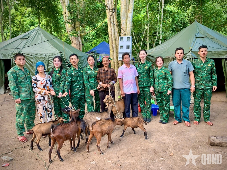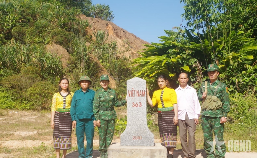Hội viên phụ nữ Ban chỉ huy Bộ đội Biên phòng tỉnh Nghệ An phối hợp cùng quân dân địa phương trong tuần tra, bảo vệ biên giới.
