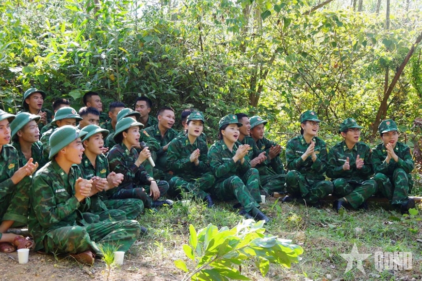 Hội Phụ nữ Ban chỉ huy Bộ đội Biên phòng tỉnh Nghệ An mang lời ca tiếng hát động viên cán bộ, chiến sĩ huấn luyện tại thao trường. |
