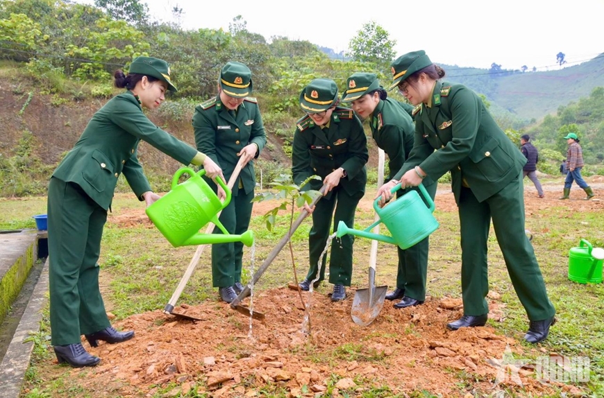 Hội viên phụ nữ Ban chỉ huy Bộ đội Biên phòng tỉnh Nghệ An tích cực tham gia trồng cây xanh, bảo vệ môi trường. Ảnh tư liệu |