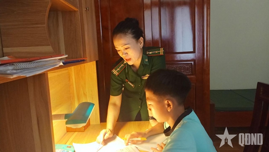 Hội viên phụ nữ Ban chỉ huy Bộ đội Biên phòng tỉnh Nghệ An hướng dẫn “Con nuôi đồn biên phòng” học bài. |