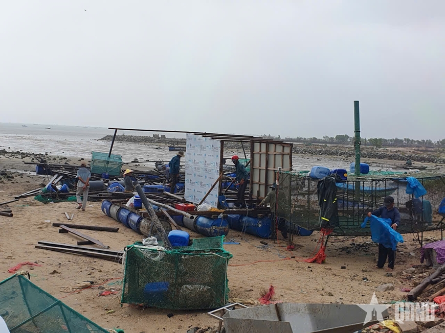 | Các lồng bè nuôi thủy sản của người dân tổ dân phố Phú Mỹ, phường Sông Cầu, tỉnh Đắk Lắk tan hoang sau thiên tai. Ảnh: SƠN BÌNH |