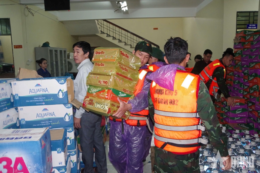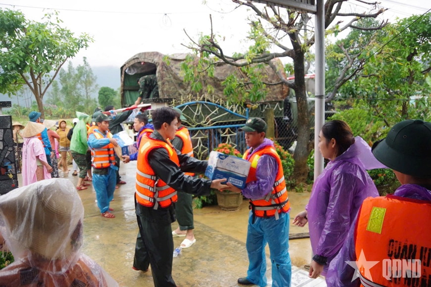 Sư đoàn 2 (Quân khu 5) vận chuyển, tiếp tế lương thực, thực phẩm đến bà con vùng lũ.