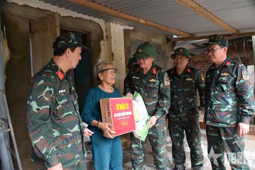 Đoàn đã đến từng gia đình chính sách, cựu quân nhân, người già neo đơn và các hộ có hoàn cảnh đặc biệt khó khăn để thăm hỏi, động viên và chia sẻ những mất mát, giúp người dân sớm ổn định tinh thần và cuộc sống.