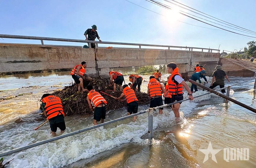 Bộ đội dọn dẹp rác ứ đọng. |