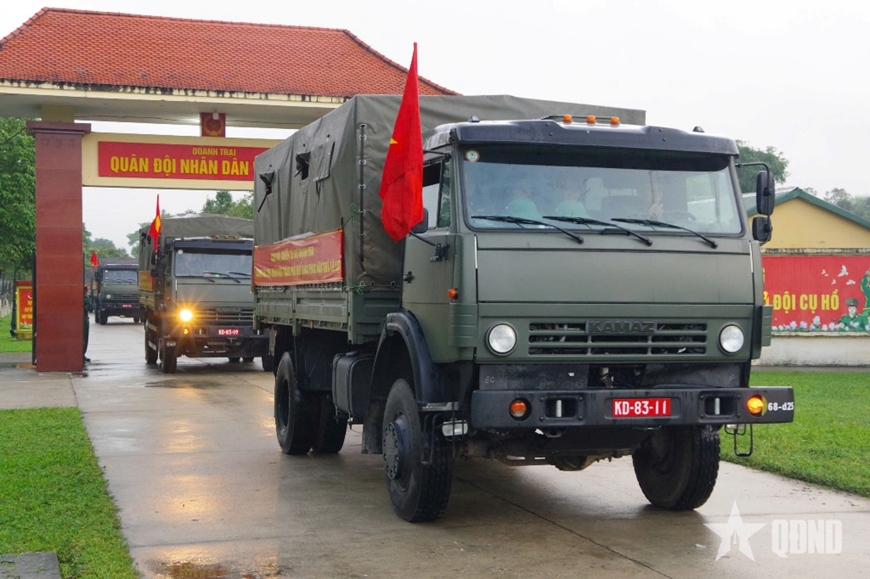 | Hơn 500 cán bộ, chiến sĩ lên đường vào thành phố Huế giúp dân khắc phục hậu quả mưa lũ. |
