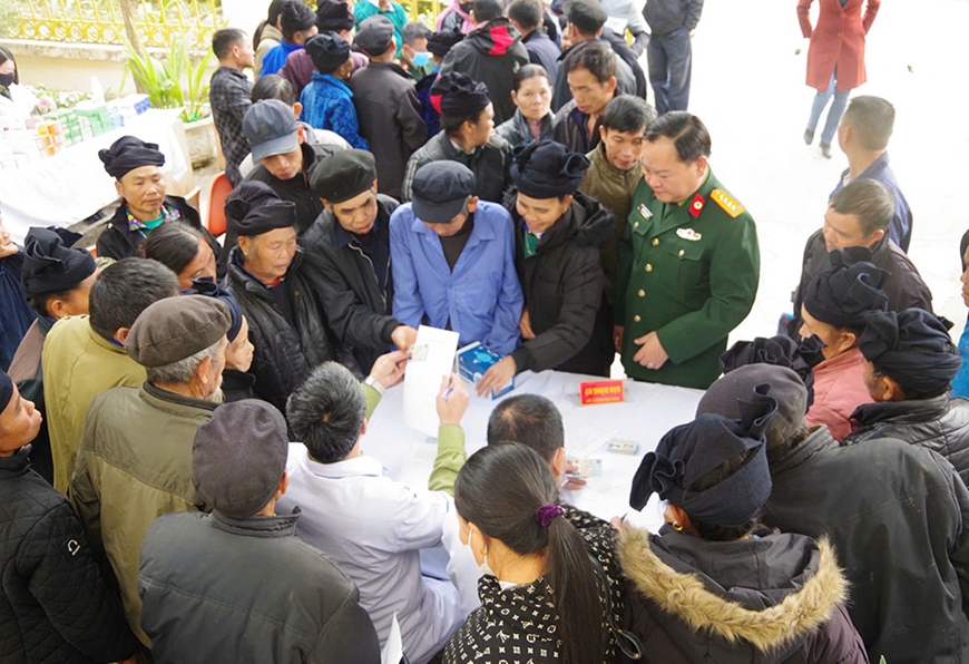 Chương trình khai mạc ngắn gọn, dòng người kéo về địa điểm khám mỗi lúc một đông. Trong dòng người hối hả ấy, chúng tôi chú ý đến bà Tần Sủa Mẩy (70 tuổi) và cô cháu gái là người đến rất sớm. Bà Mẩy cho biết: "Nhà tôi ở thôn Lùng Vái, xã Cán Tỷ. Biết tin có đoàn bác sĩ Quân đội dưới xuôi lên khám bệnh, cấp thuốc miễn phí cho bà con, tôi giục cháu gái thức dậy từ 3 giờ sáng và đi bộ hơn 12km đến đây để được khám bệnh". Bà Tần Sủa Mẩy được Trung tá Phan Hữu Huấn, Chủ nhiệm Khoa Phục hồi chức năng, BVQY 109 tiến hành siêu âm. Đưa kết quả cho bà Mẩy, bác sĩ Huấn dặn kỹ: "Siêu âm thấy có nang thận, tuy chưa nguy hiểm đến tính mạng nhưng phải được theo dõi, thăm khám định kỳ bà nhé. Nếu cơ thể có triệu chứng thay đổi, bà cần đến ngay cơ sở y tế gần nhất để được các bác sĩ thăm khám, điều trị". Trước lúc ra về, bà Mẩy còn được cấp một số loại thuốc điều trị và hướng dẫn cách sử dụng.