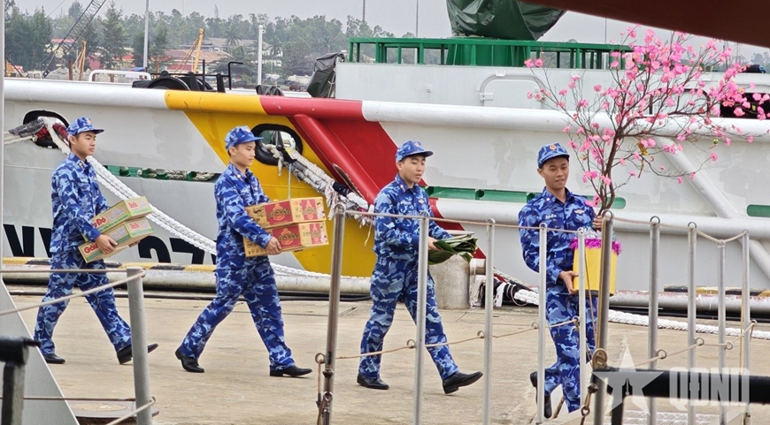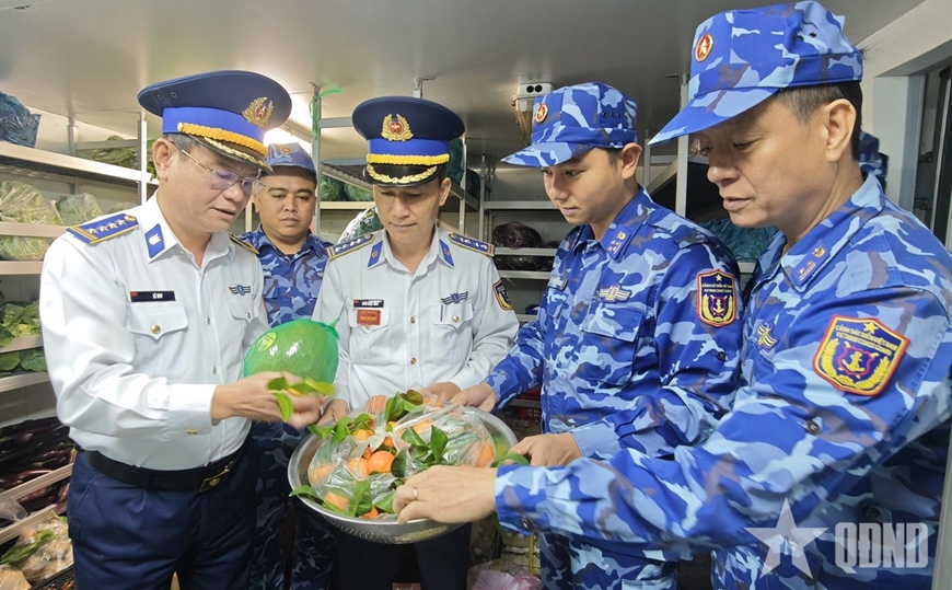 Cùng với công tác chuẩn bị về con người, công tác bảo đảm hậu cần, kỹ thuật được triển khai đồng bộ, chu đáo, đúng quy định. Các loại lương thực, thực phẩm, nhu yếu phẩm phục vụ sinh hoạt hằng ngày và trong dịp Tết được chuẩn bị đầy đủ; nguyên liệu gói bánh chưng, bánh kẹo ngày Xuân được sắp xếp khoa học, bảo đảm để cán bộ, chiến sĩ vừa hoàn thành nhiệm vụ, vừa đón Tết trên biển trong không khí đầm ấm, nghĩa tình.