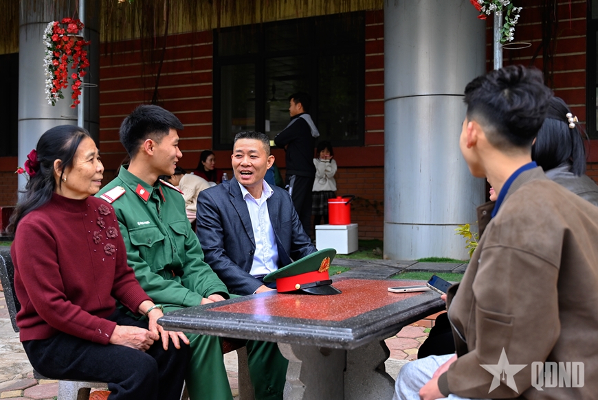 Niềm vui của chiến sĩ cũng là niềm yên tâm của các bậc phụ huynh. Ông Vũ Ngọc Thủy (xã Đan Phượng, TP Hà Nội) tranh thủ ngày Tết cùng gia đình đến thăm con trai là Hạ sĩ Vũ Hùng Phong, chiến sĩ Trung đội 1, Đại đội 2. Không giấu niềm tự hào rạng rỡ trên khuôn mặt, ông bày tỏ: “Thấy môi trường ở đây chính quy, nền nếp, hoạt động Tết được tổ chức bài bản, chu đáo cho con em mình, gia đình tôi rất phấn khởi và yên tâm. Mong năm mới chỉ huy cùng chiến sĩ đơn vị thật nhiều sức khỏe, hoàn thành xuất sắc nhiệm vụ được giao!”.