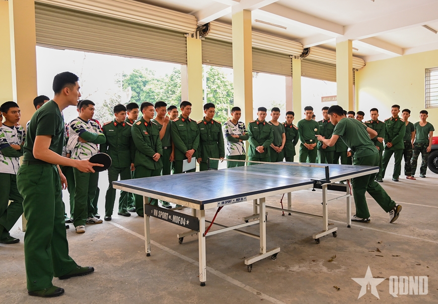 Ở khu vực thi đấu bóng bàn, các trận đấu liên tục “đỏ” lửa với những pha bóng xoáy và hiểm của các tay vợt. Mỗi pha bóng đẹp kết thúc lại kèm theo những tiếng reo: “Tốt!, Hay!"… Phía cuối sân của Đại đội 2, hai đội kéo co dồn hết sức cho những lượt giằng co “cân não”, rồi tất cả cùng reo vang khi thắng - thua phân định…