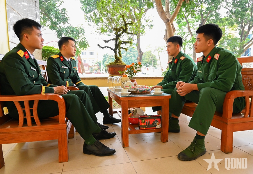 Sáng Mồng 3 Tết (ngày 19-2), khi nhiều tuyến phố của Hà Nội còn thưa người qua lại, khuôn viên Tiểu đoàn Vệ binh - Kiểm soát quân sự (Bộ tư lệnh Thủ đô Hà Nội) đã rộn vang tiếng cười nói. Cờ Tổ quốc, cờ Đảng tung bay trong tiết trời se lạnh của những ngày đầu xuân.
