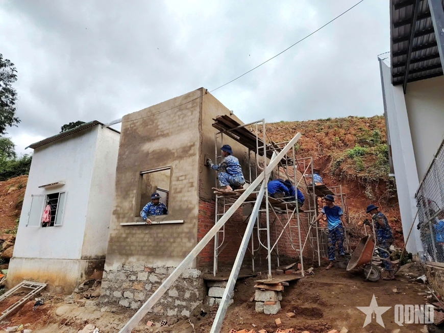Sau 13 ngày thần tốc vượt qua khó khăn về thời tiết, địa hình và nguyên vật liệu, đến nay hai ngôi nhà xây dựng giúp gia đình ông Cao Cà Yên và Phạm Ngọc Bình đã hoàn thiện phần thô, đang tiến hành lát tường nhà. Do vị trí địa hình gia đình ông Cao Cà Yên là đồi núi nguy hiểm phía sau, Lữ đoàn 101 đã chủ động tham mưu, đề xuất với chính quyền địa phương xây dựng thêm cho gia đình tường kè, đổ trụ, giằng bê tông chắc chắn, bảo đảm an toàn cho ngôi nhà trước nguy cơ sạt lở đất.