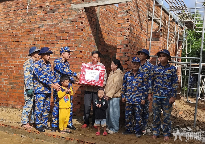 | Đoàn công tác đến thăm, tặng quà các hộ dân trên địa bàn được đơn vị giúp đỡ xây dựng nhà sau thiên tai; đồng thời động viên cán bộ, chiến sĩ đang thực hiện “Chiến dịch Quang Trung”. |