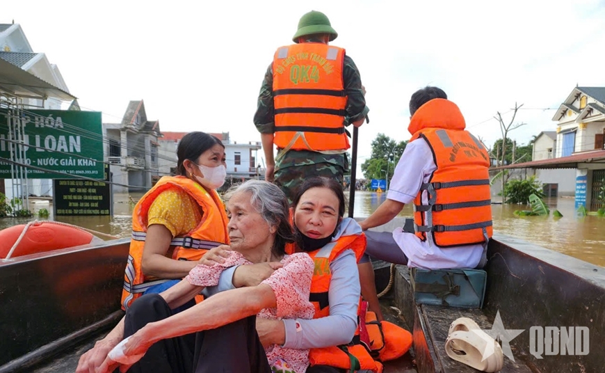Để ứng phó với bão lũ, giảm thiệt hại thấp nhất tài sản tính mạng của nhà nước và người dân, LLVT tỉnh Thanh Hóa đã huy động khẩn cấp hơn 5.000 cán bộ, chiến sĩ cùng gần 4.000 lượt dân quân tự vệ với nhiệm vụ ưu tiên cao nhất là đảm bảo tính mạng người dân. Chỉ trong thời gian ngắn, các lực lượng đã tổ chức sơ tán gần 4.500 hộ với hơn 17.000 nhân khẩu sinh sống trong vùng nguy hiểm đến nơi an toàn. Sự có mặt kịp thời của những người lính đã biến các điểm sơ tán thành nơi trú chân ấm áp, kịp thời chuyển xuống xuồng và phân phát hơn 5 tấn nhu yếu phẩm thiết yếu như mì tôm, lương khô, nước uống, áo phao tận tay từng hộ dân.