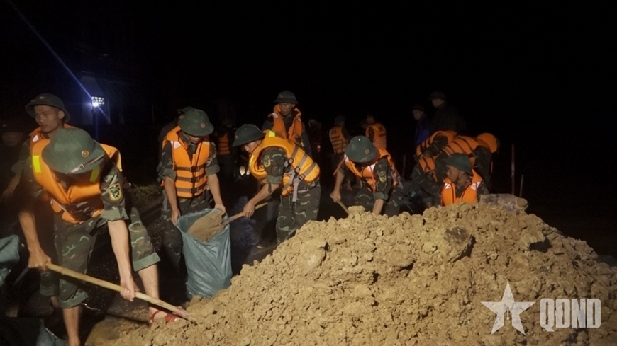 Trên các tuyến đê xung yếu, cán bộ, chiến sĩ đã trắng đêm hộ đê. Tiếng hiệu lệnh báo động của Trung đoàn 762 vang rền khi 300m tuyến đê cấp 1 sông Mã đoạn qua phường Quảng Phú có nguy cơ sạt trượt, uy hiếp gần 10.000 hộ dân phía nội đê. Giữa trời nhá nhem tối, mưa tạt từng cơn, gió rít liên hồi, hoạt động xử lý sự cố vẫn diễn ra hối hả, không ngừng nghỉ. Tinh thần quyết tâm “còn nước, còn người” đã bảo vệ thành công các tuyến đê trọng yếu.