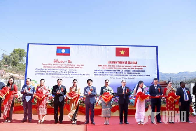 | Lễ khánh thành và bàn giao nhà công vụ tỉnh Xay Sổm Bun (Lào) do Quân khu 4 làm chủ đầu tư. |