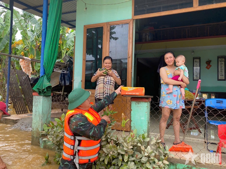 | Lữ đoàn Công binh 270 tiếp tế thực phẩm giúp người dân vùng lũ Đà Nẵng. |