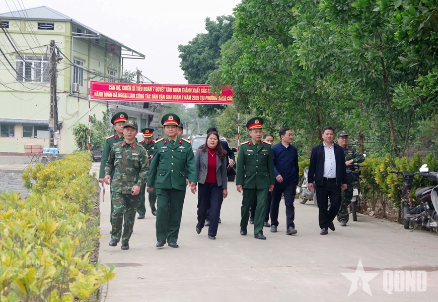 Đại tá Nguyễn Hoàng Tú, Phó chủ nhiệm Chính trị Quân đoàn 12 và đoàn công tác kiểm tra, động viên cán bộ, chiến sĩ Trung đoàn 209 thực hiện nhiệm vụ dã ngoại làm công tác dân vận tại phường Sông Công, tỉnh Thái Nguyên.